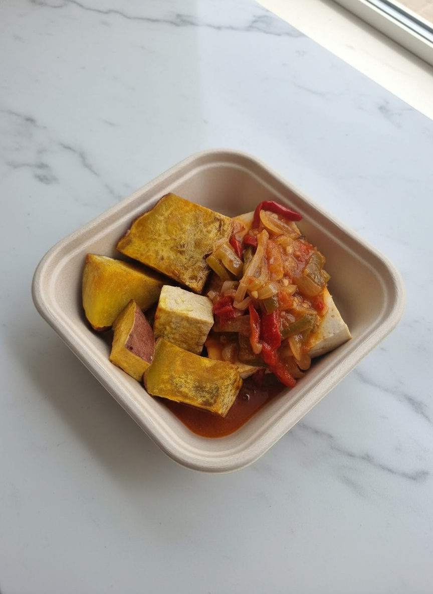 TOFU, TOMATE SECO, tomillo, VINO BLANCO RAMA CORTA. Gluten, soja, sulfitos.