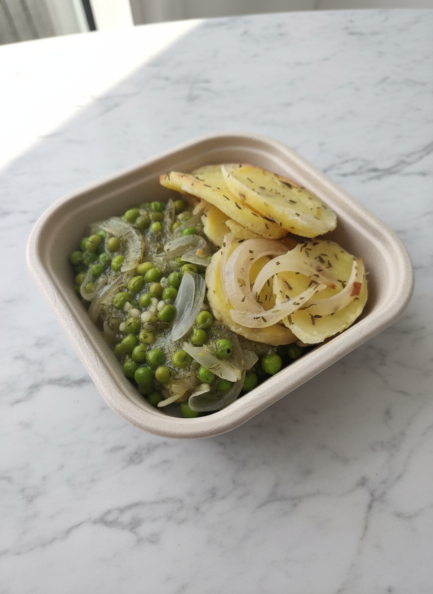 frescos, guisantes, papas, perejil, pimiento verde, puerro, TOFU,